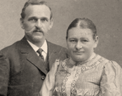 Die Familie Stegmann ist mit Adam Stegmann 1575 erstmals in Ziemetshausen erwähnt. Seither wurden Beruf und Gewerbe in der männlichen Nachkommenschaft vererbt. 1866 errichtete Josef Stegmann das heute noch bestehende Ökonomiegebäude, in dessen Wohnbereich er die Weberei im Haupterwerb betrieb. Sein Sohn Georg Stegmann kaufte 1925 seinen ersten mechanischen Webstuhl, ein gebrauchtes englisches Fabrikat, und betrieb es in der Wohnstube. 1928 errichtete er eine Weberwerkstatt. | Josef und Rosa Stegmann, ca. 1900 |